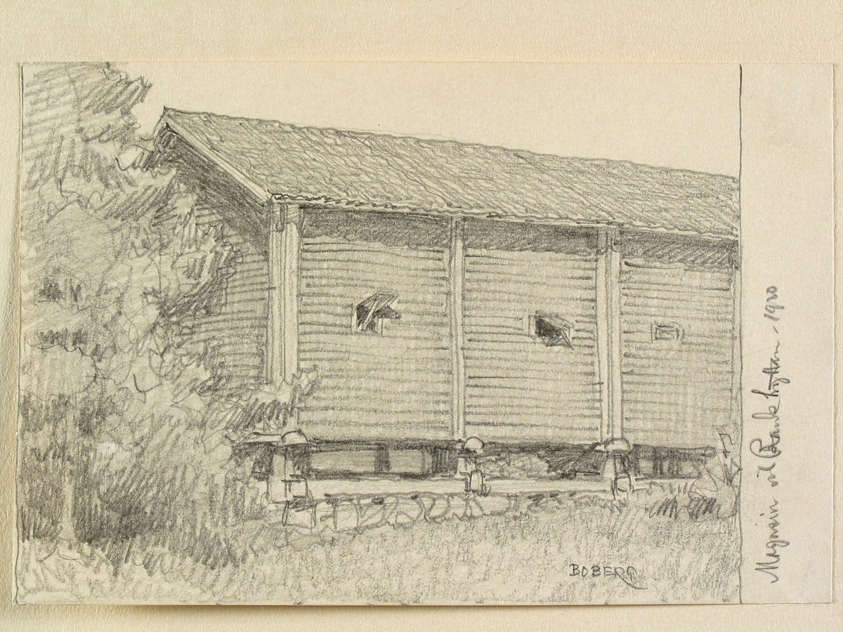 Dalarna, Vika sn. "Magasin vid Rankhyttan". Teckning av Ferdinand Boberg