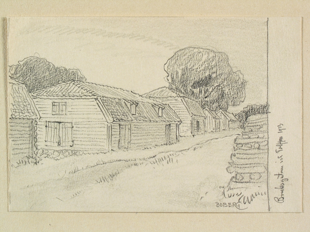 Gästrikland, Valbo sn. Bruksgatan i Tolvfors. Teckning av Ferdinand Boberg.