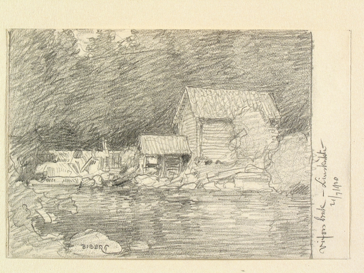Gästrikland, Hamrånge sn. Vifors bruk, linskäkta. Teckning av Ferdinand Boberg.