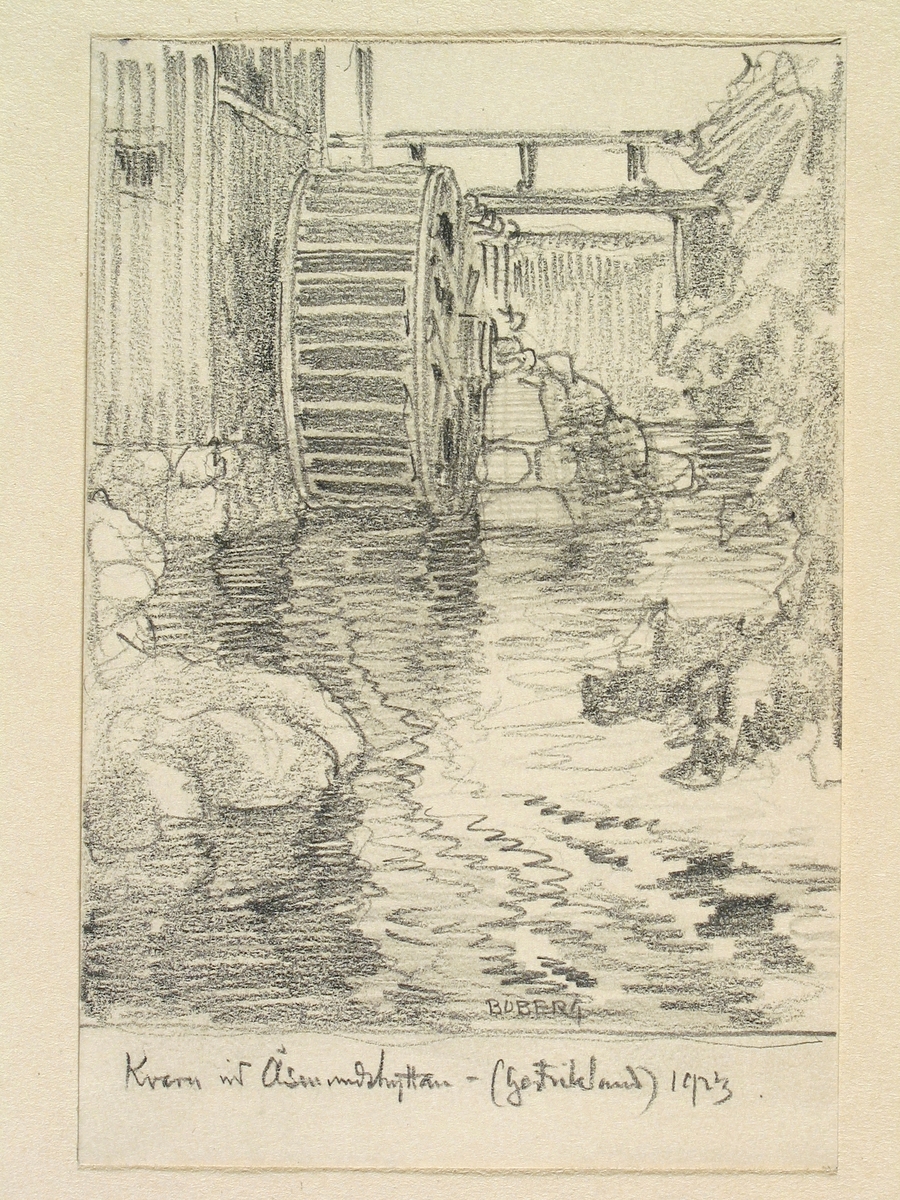 Gästrikland, Torsåkers sn. Kvarn vid Åsmundshyttan. Teckning av Ferdinand Boberg.