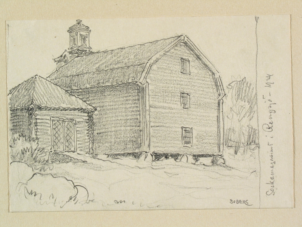 Teckning av Ferdinand Boberg. Hälsingland, Rengsjö sn. , Sockenmagasinet
