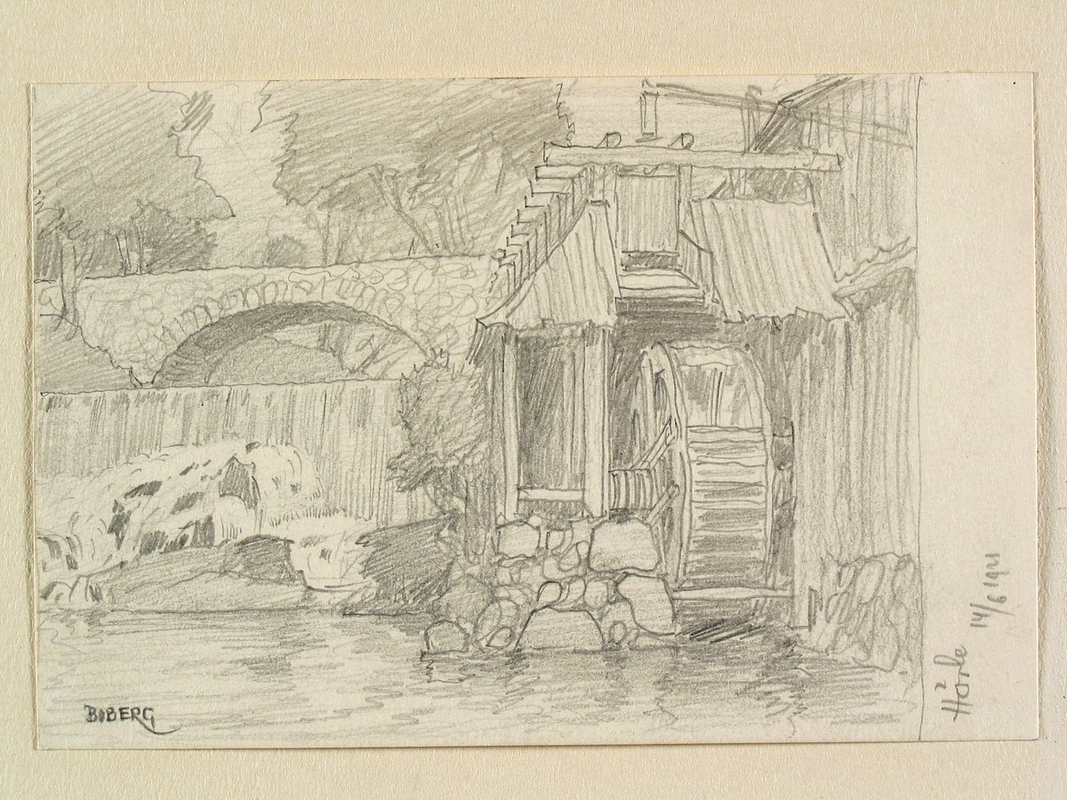 Teckning av Ferdinand Boberg. Småland, Östbo hd., Värnamo sn., Hörle, bruk m.m.