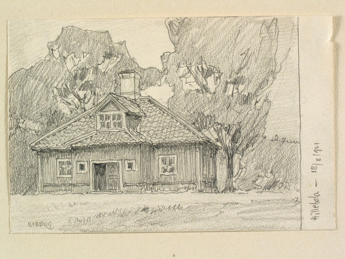 Teckning av Ferdinand Boberg. Uppland, Olands hd., Öster Lövsta sn., Hillebola, Förmans bostad