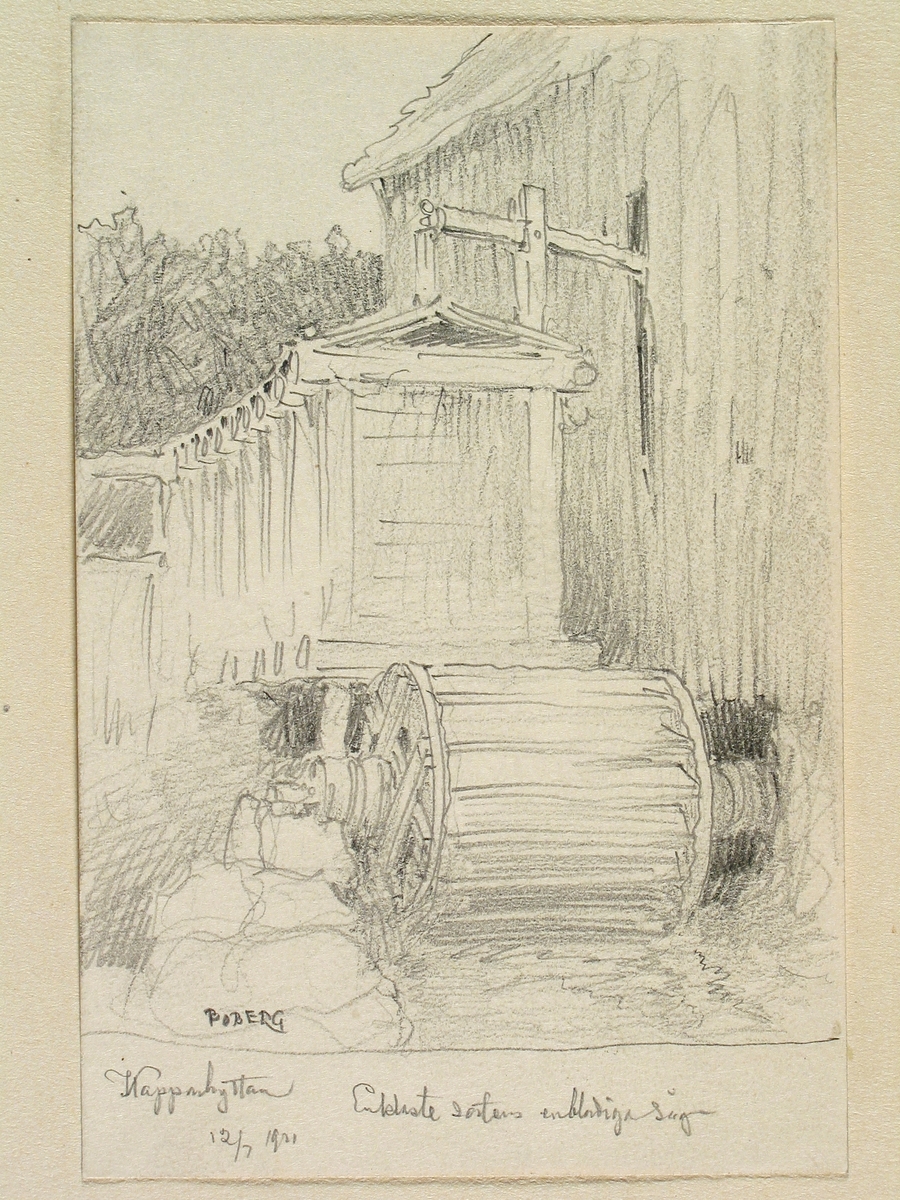 Teckning av Ferdinand Boberg. Västmanland, Kopparhyttan, spikfabr. Järnboås gård Nora landsf