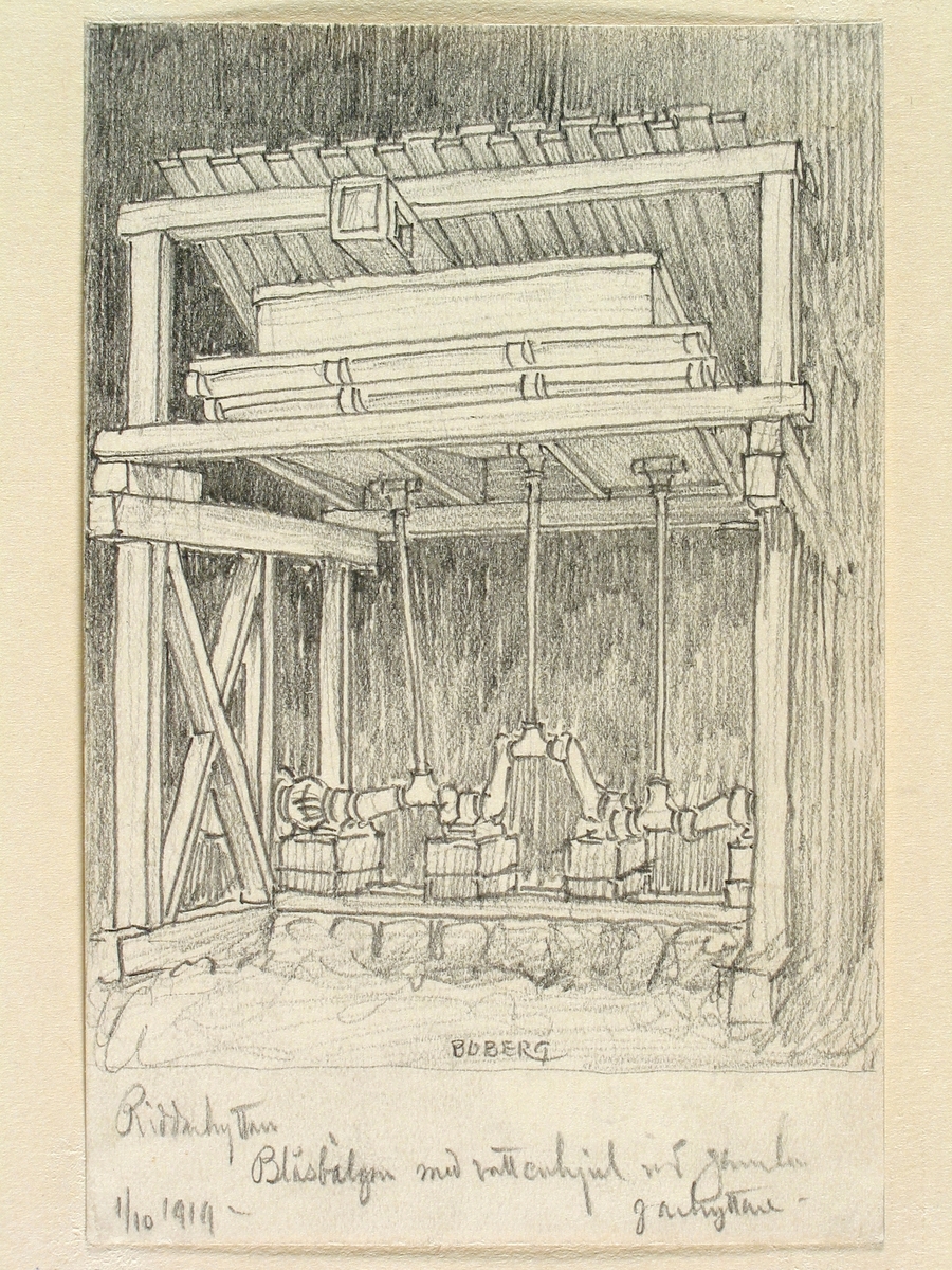 Teckning av Ferdinand Boberg. Västmanland, Skinnskatteberg sn., Riddarhyttan, Garhyttan