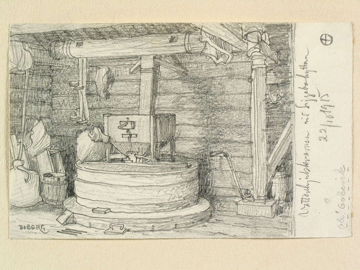 Västmanland, Nora landsförsamling. Vattenhjulskvarnen vid Siggebohyttan, Öskevik. Teckning av Ferdinand Boberg