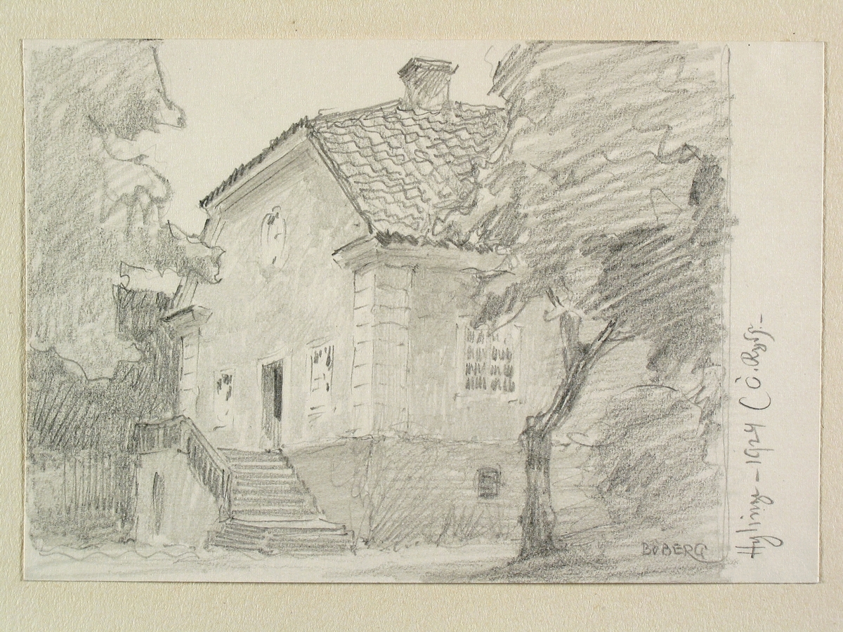 Teckning av Ferdinand Boberg. Östergötland, Hammarkinds hd., Västra Husby sn., Hylinge