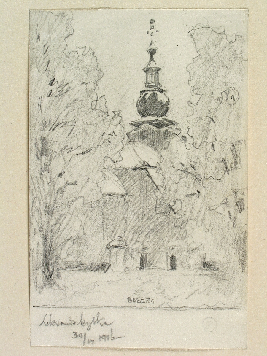 Teckning av Ferdinand Boberg. Dalarna, Leksands sn., Leksands k:a