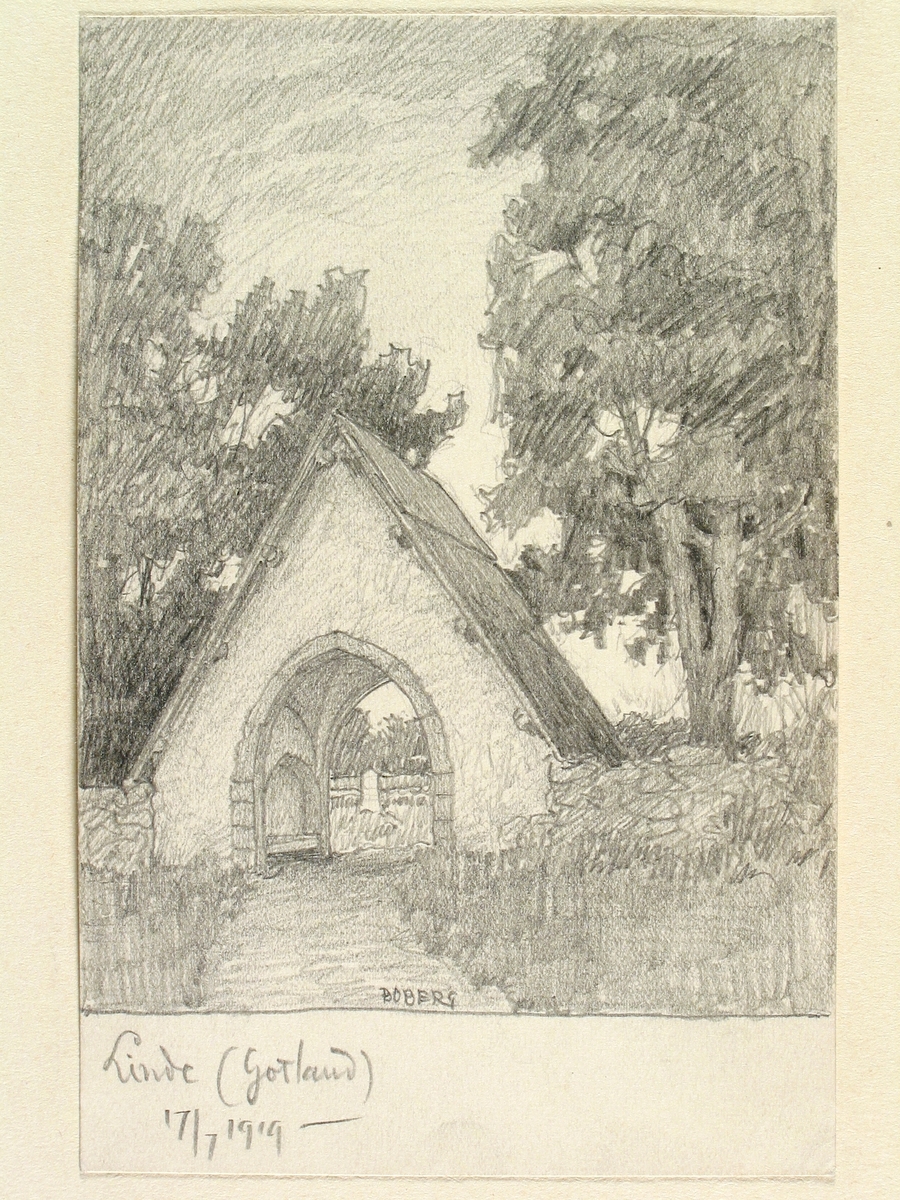 Teckning av Ferdinand Boberg. Gotland, Linde k:a, Stigluckan