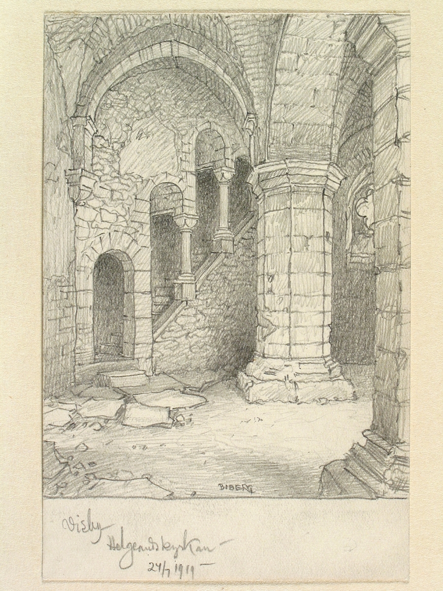 Teckning av Ferdinand Boberg. Visby, Helgeandskyrkan