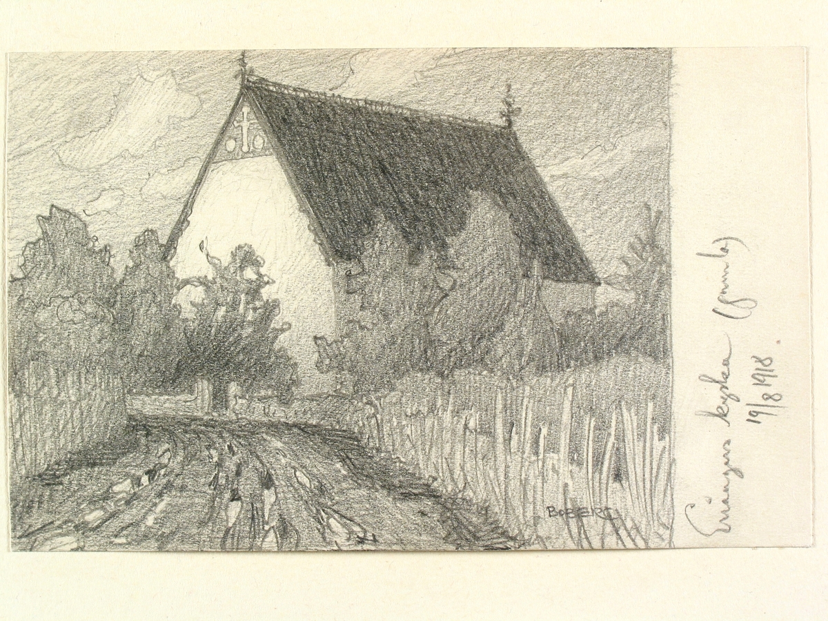 Teckning av Ferdinand Boberg. Hälsingland, Enångers k:a