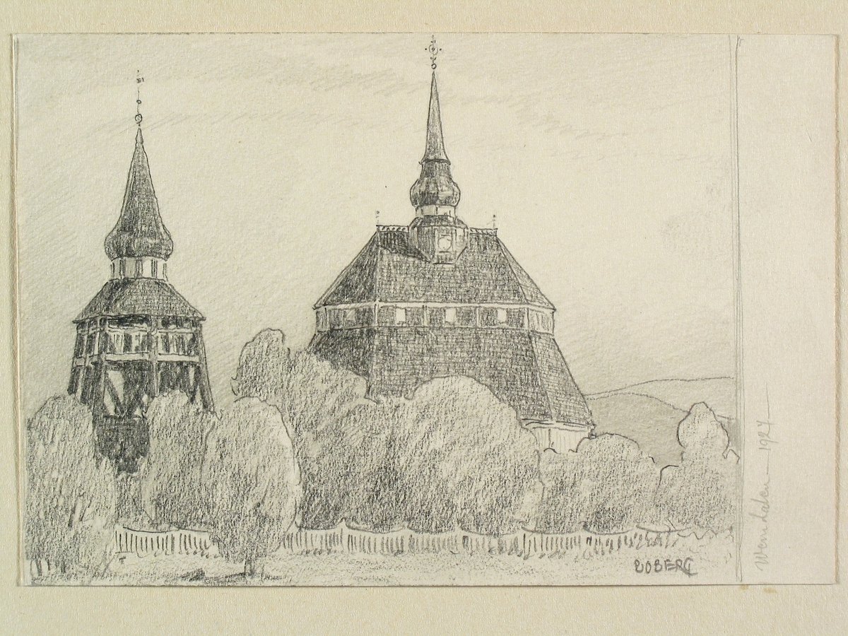 Teckning av Ferdinand Boberg. Härjedalen, Vemdalens kyrka