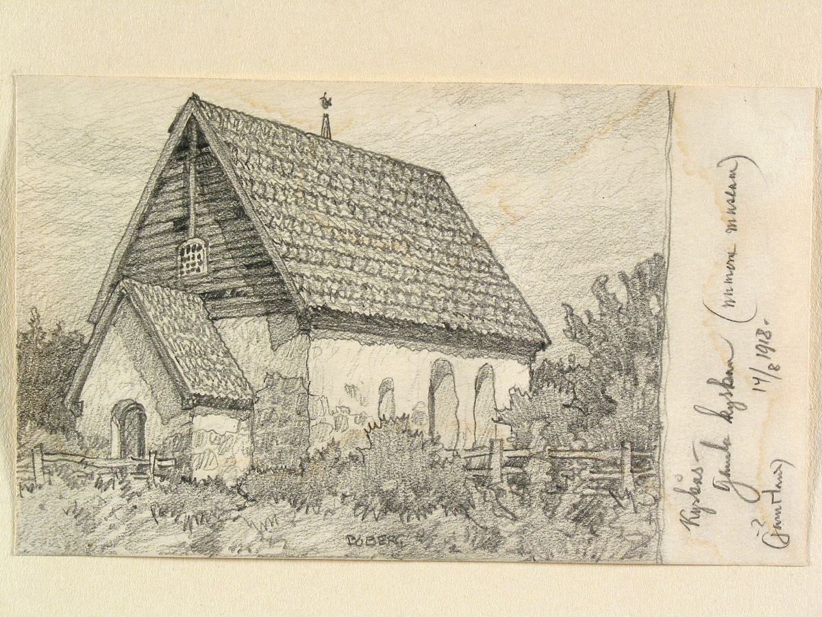 Teckning av Ferdinand Boberg. Jämtland, Kyrkås k:a