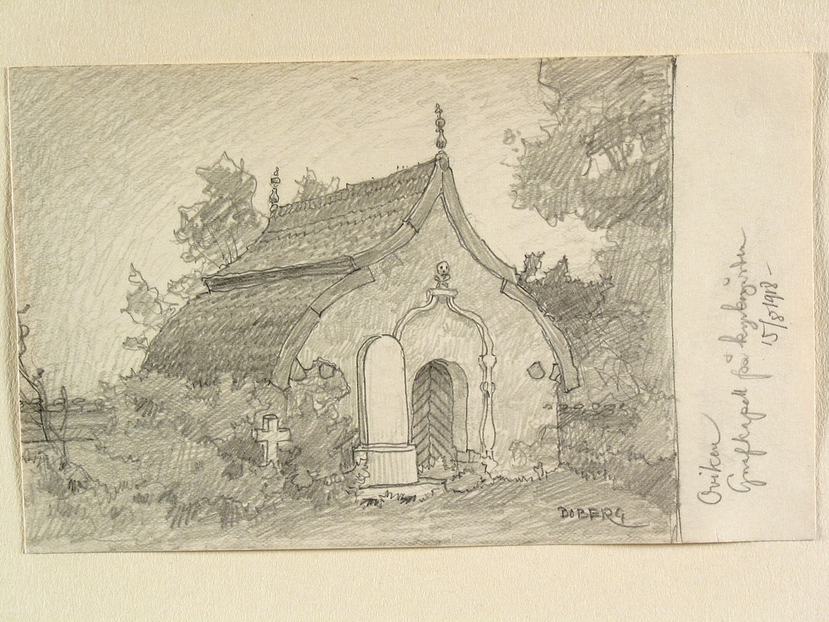 Teckning av Ferdinand Boberg. Jämtland, Ovikens k:a, Gravkapell