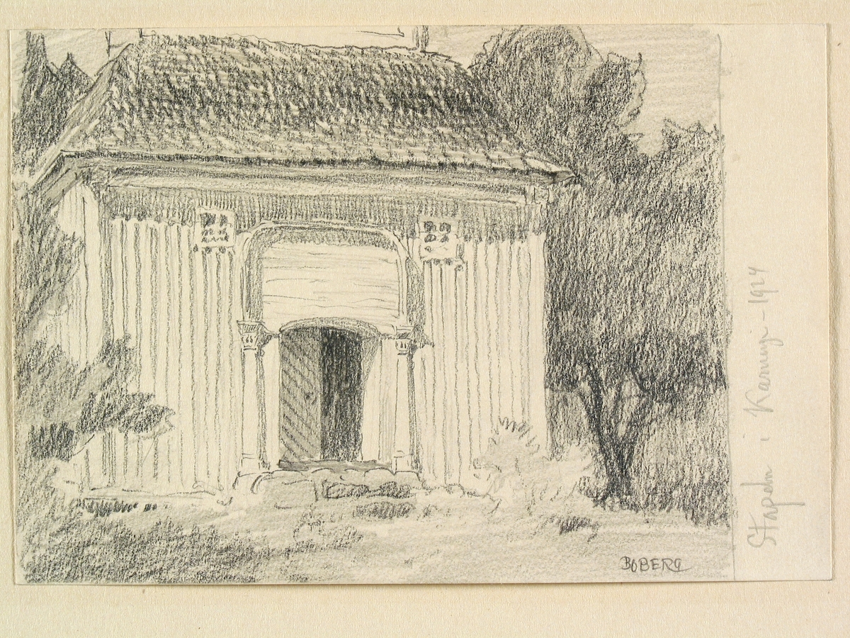 Teckning av Ferdinand Boberg. Norrbotten, Karl-Gustafs sn., Karungi kyrka, Stapeln