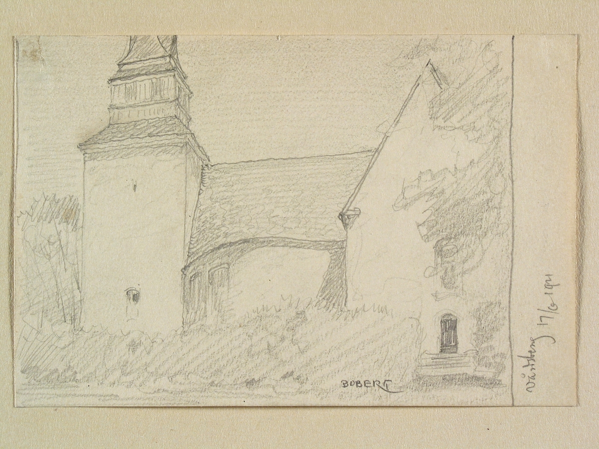 Teckning av Ferdinand Boberg. Östergötland, Bankekinds hd., Vårdsbergs kyrka