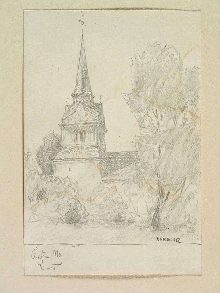 Teckning av Ferdinand Boberg. Östergötland, Björkekinds hd., Östra Ny kyrka