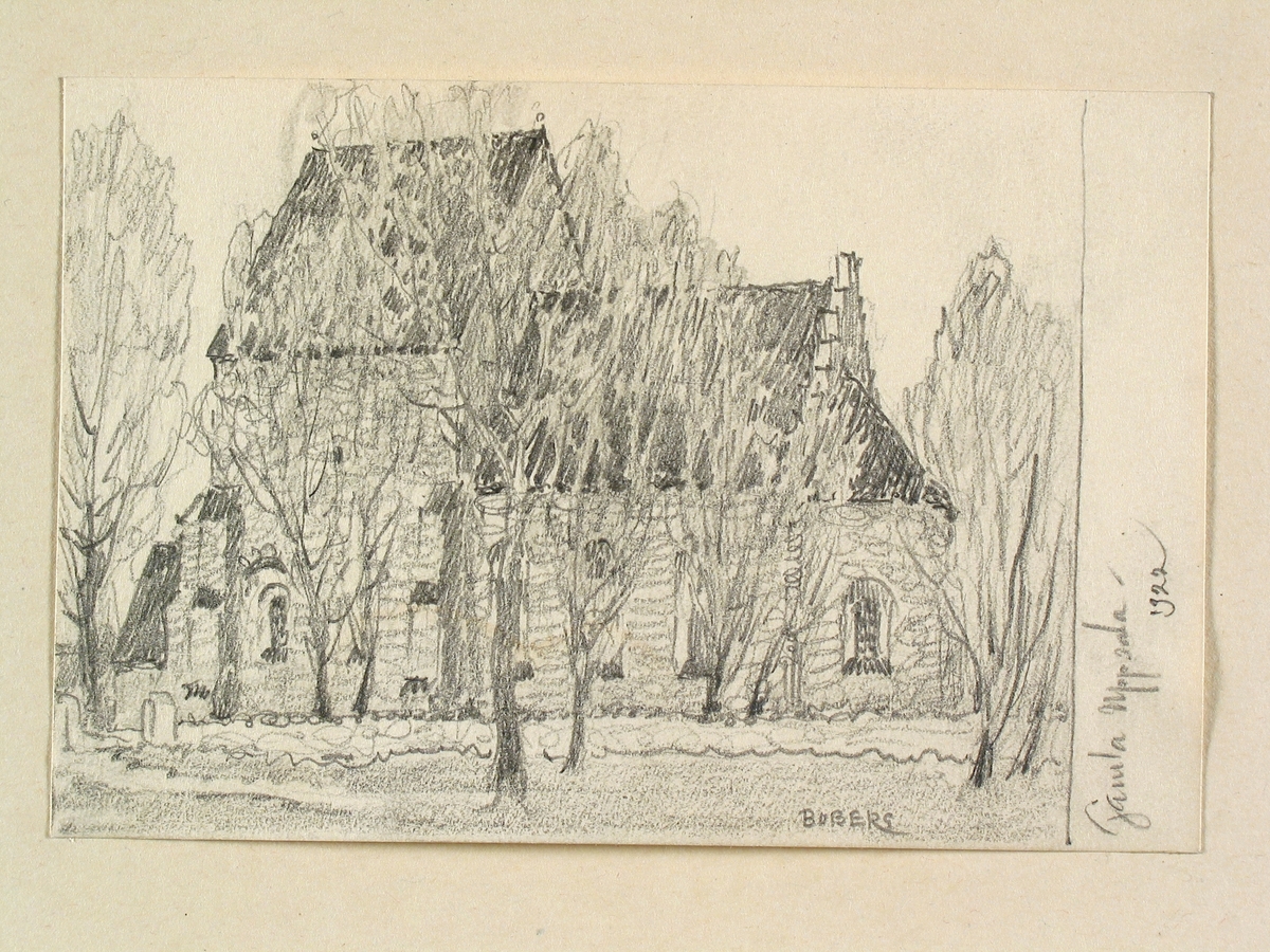 Teckning av Ferdinand Boberg. Uppland, Vaksala hd., Gamla Uppsala k:a