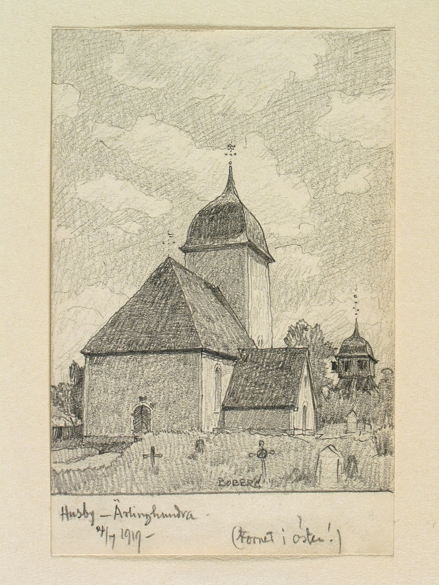 Teckning av Ferdinand Boberg. Uppland, Erlinghundra hd., Husby Erlinghundra kyrka
