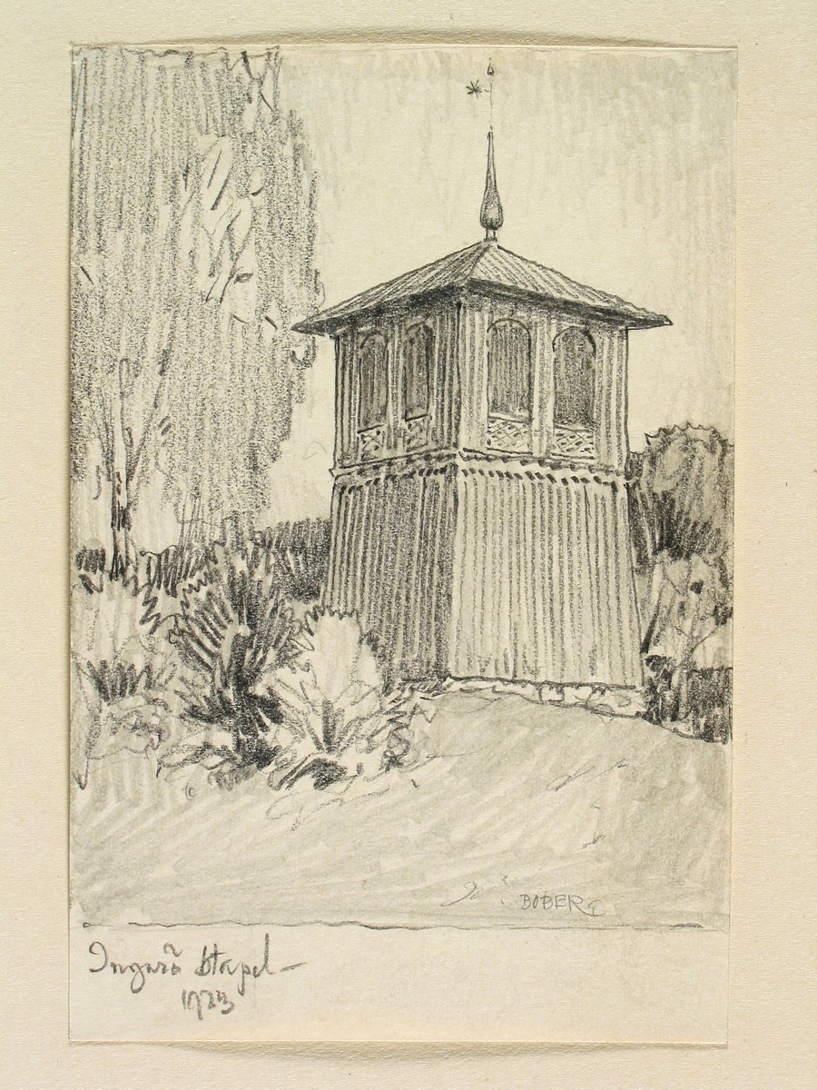 Teckning av Ferdinand Boberg. Uppland, Värmdö skplg., Ingarö kyrka, Stapeln