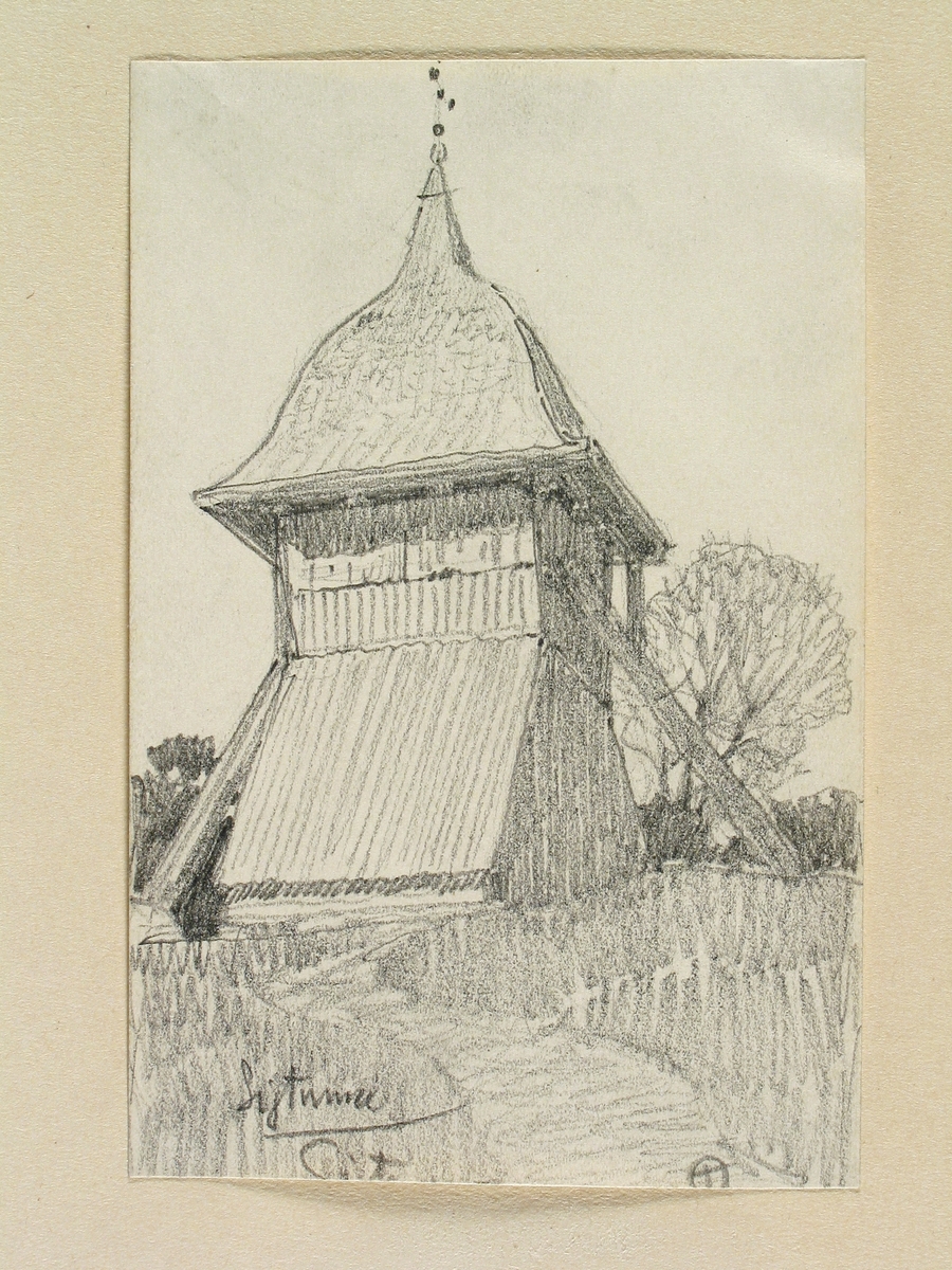 Teckning av Ferdinand Boberg. Sigtuna, Klockstapeln