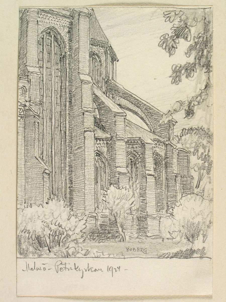 Teckning av Ferdinand Boberg. Malmö, Petrikyrkan