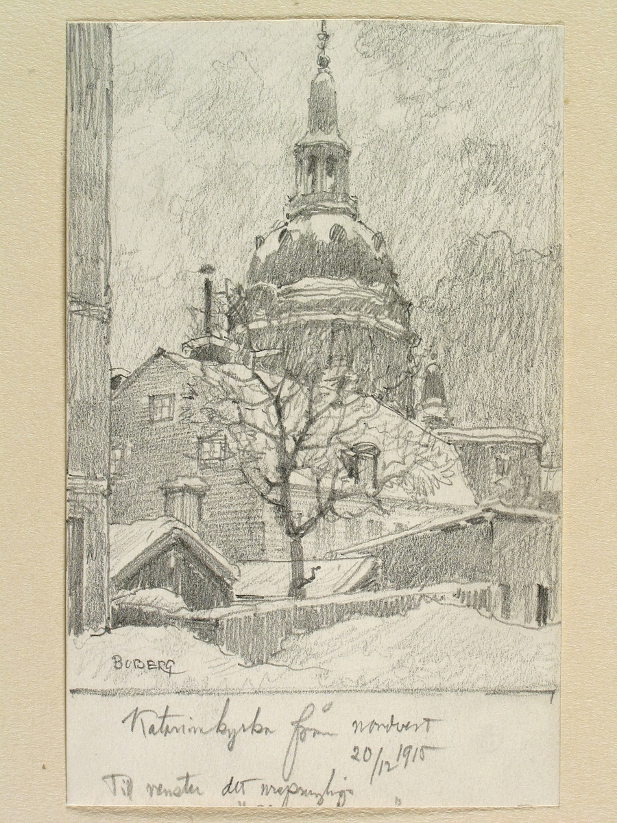 Teckning av Ferdinand Boberg. Stockholm, Söder, Katarina kyrka