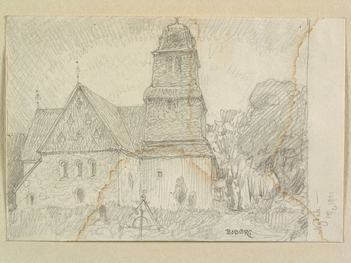Teckning av Ferdinand Boberg. Småland, Västra hd., Nydala kyrka
