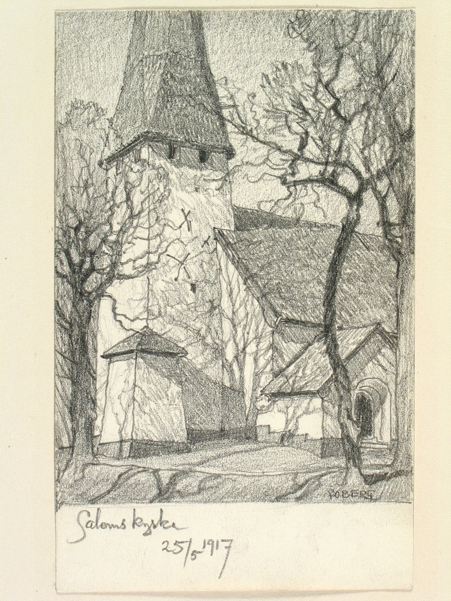 Teckning av Ferdinand Boberg. Södermanland, Svartlösa hd., Salems k:a