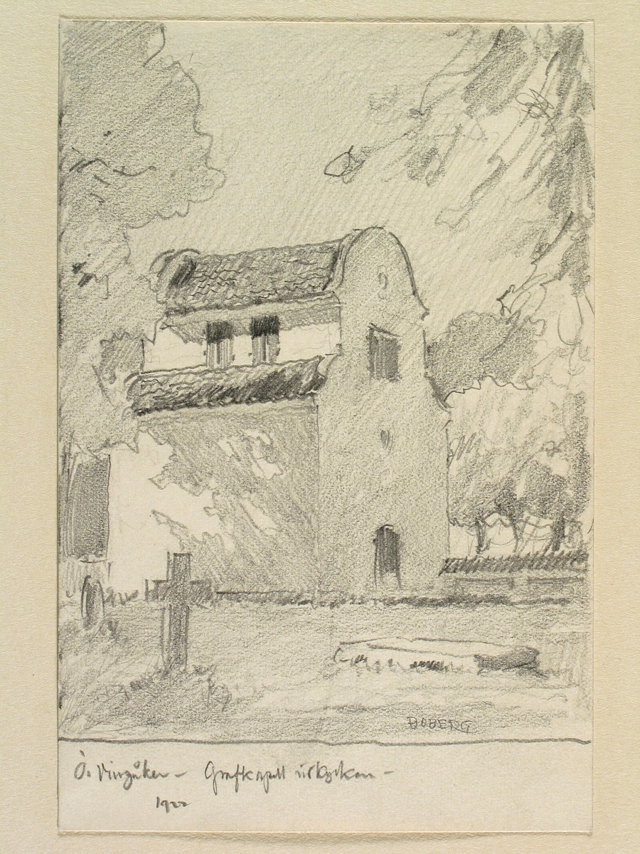 Teckning av Ferdinand Boberg. Södermanland, Oppunda hd., Östra Vingåkers kyrka, Gravkapell