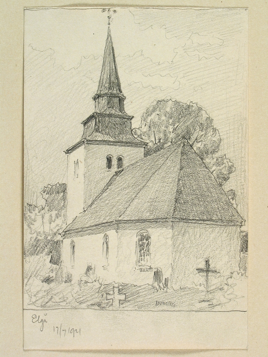 Teckning av Ferdinand Boberg. Värmland, Jösse hd., Älgå kyrka