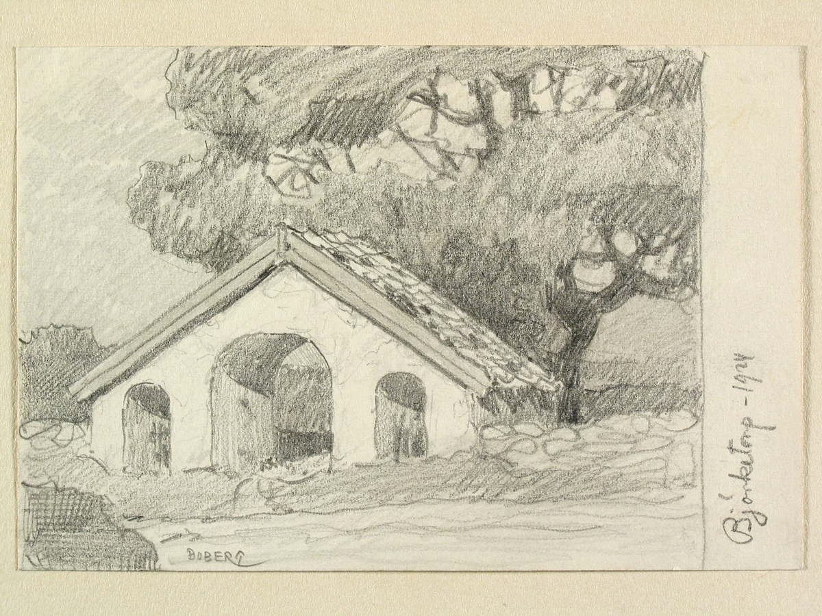 Teckning av Ferdinand Boberg. Västergötland, Bollebugds hd. (Bollebygds hd.?), Björketorps k:a, Stigluckan