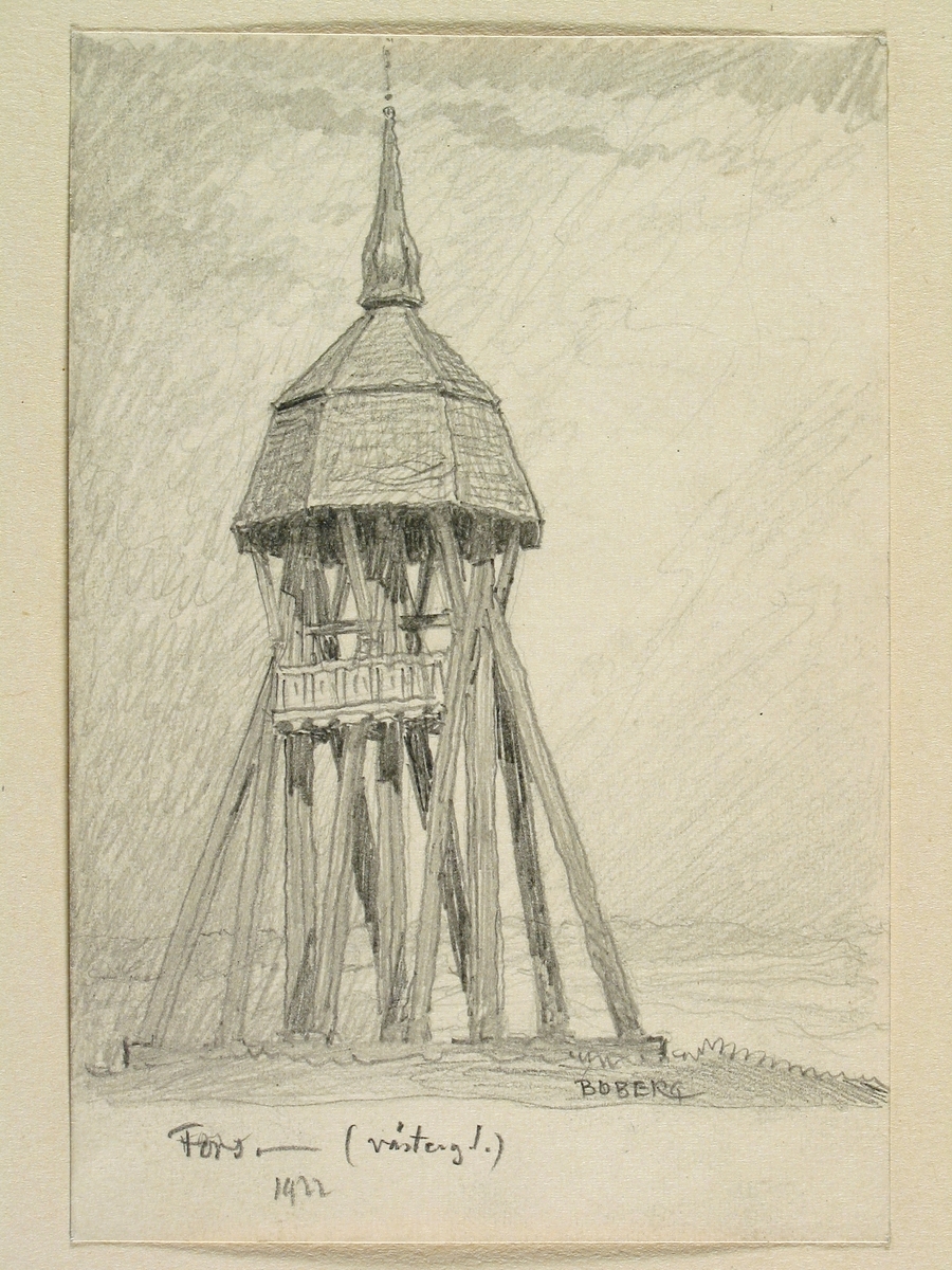 Teckning av Ferdinand Boberg. Västergötland, Flundre hd., Fors k:a, Stapeln