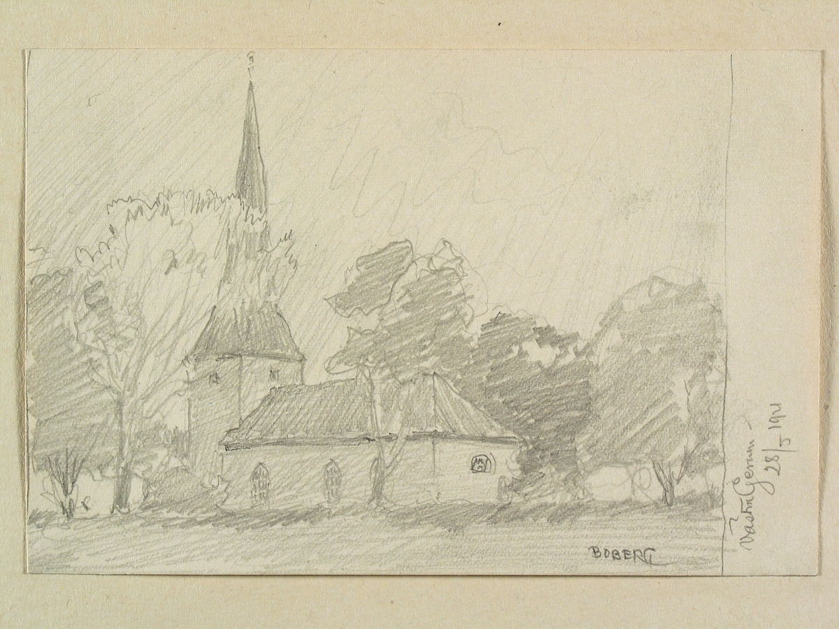 Teckning av Ferdinand Boberg. Västergötland, Vartofta hd., Gerums kyrka