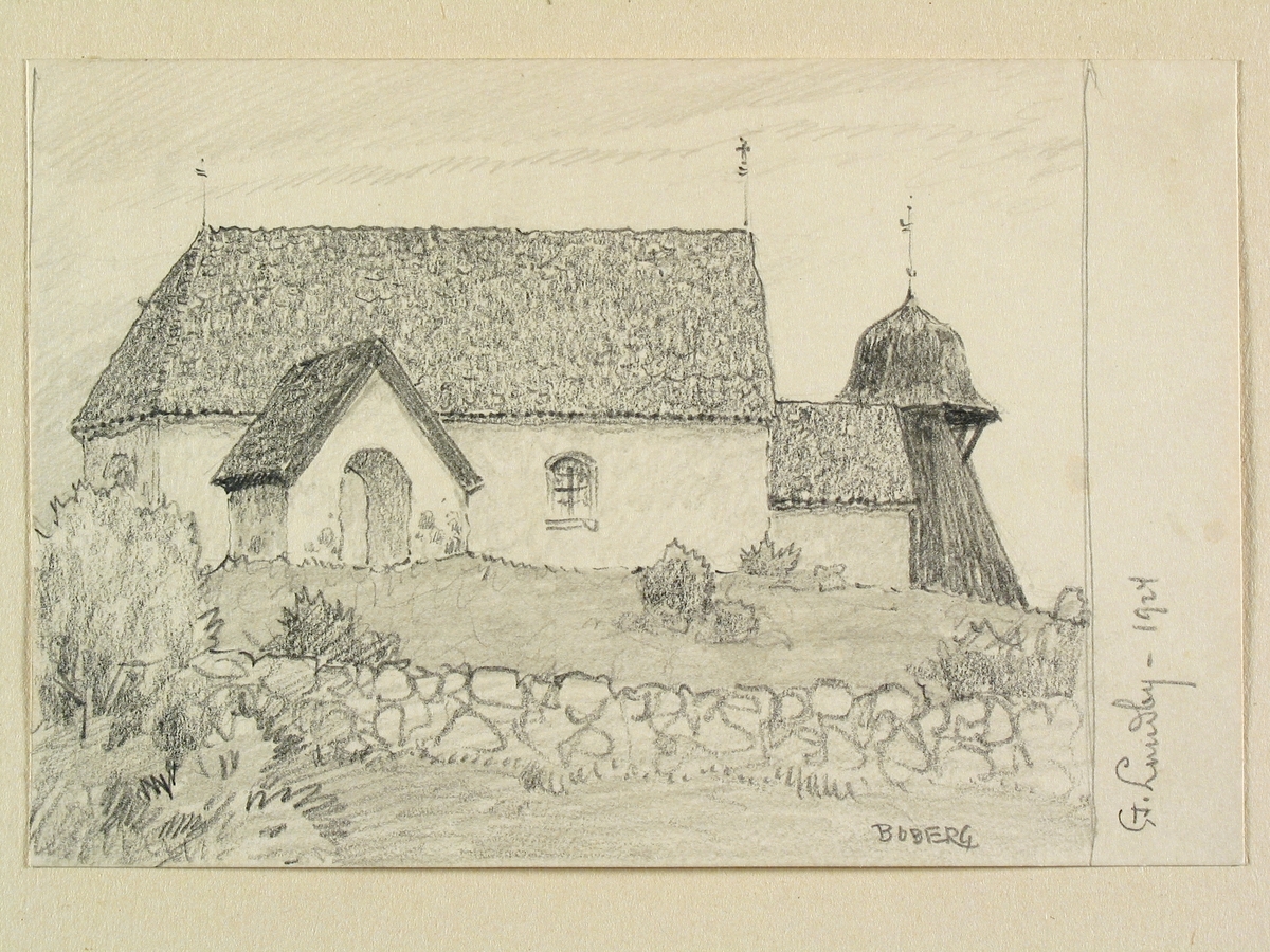 Teckning av Ferdinand Boberg. Västergötland, Vätte hd., Stora Lundby k:a