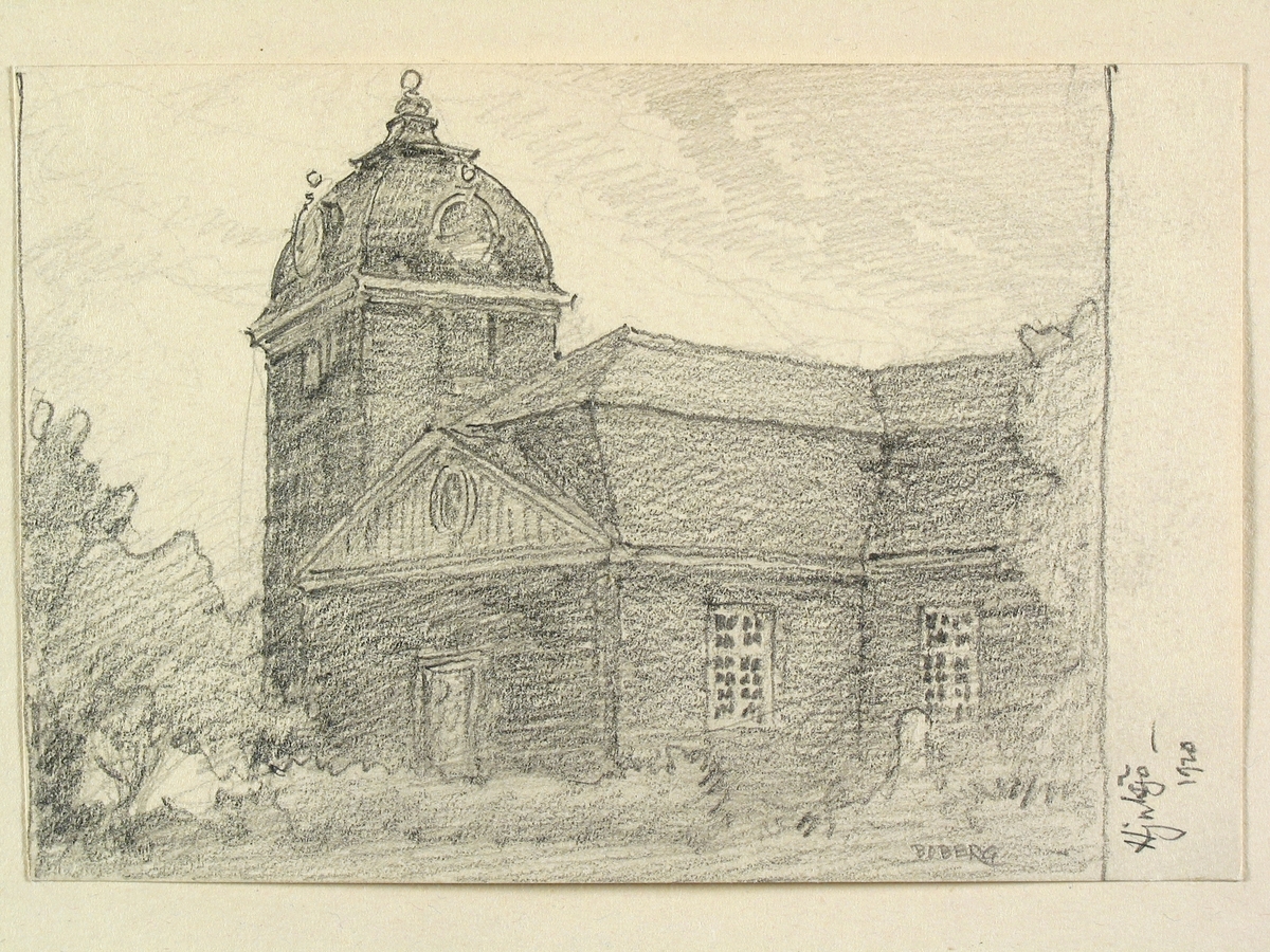 Teckning av Ferdinand Boberg. Västmanland, Nora och Hjulsjö blg., Hjulsjö kyrka