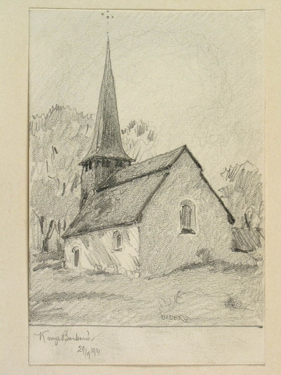 Teckning av Ferdinand Boberg. Västmanland, Åkerbo hd., Kungs Barkarö kyrka