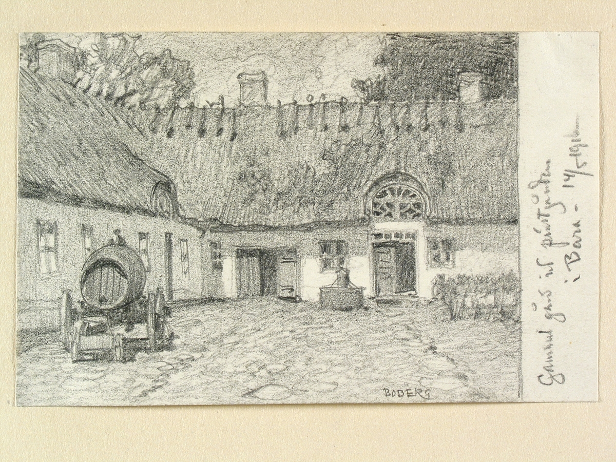 Teckning av Ferdinand Boberg. Skåne, Bara hd., Bara sn., G:la prästgården