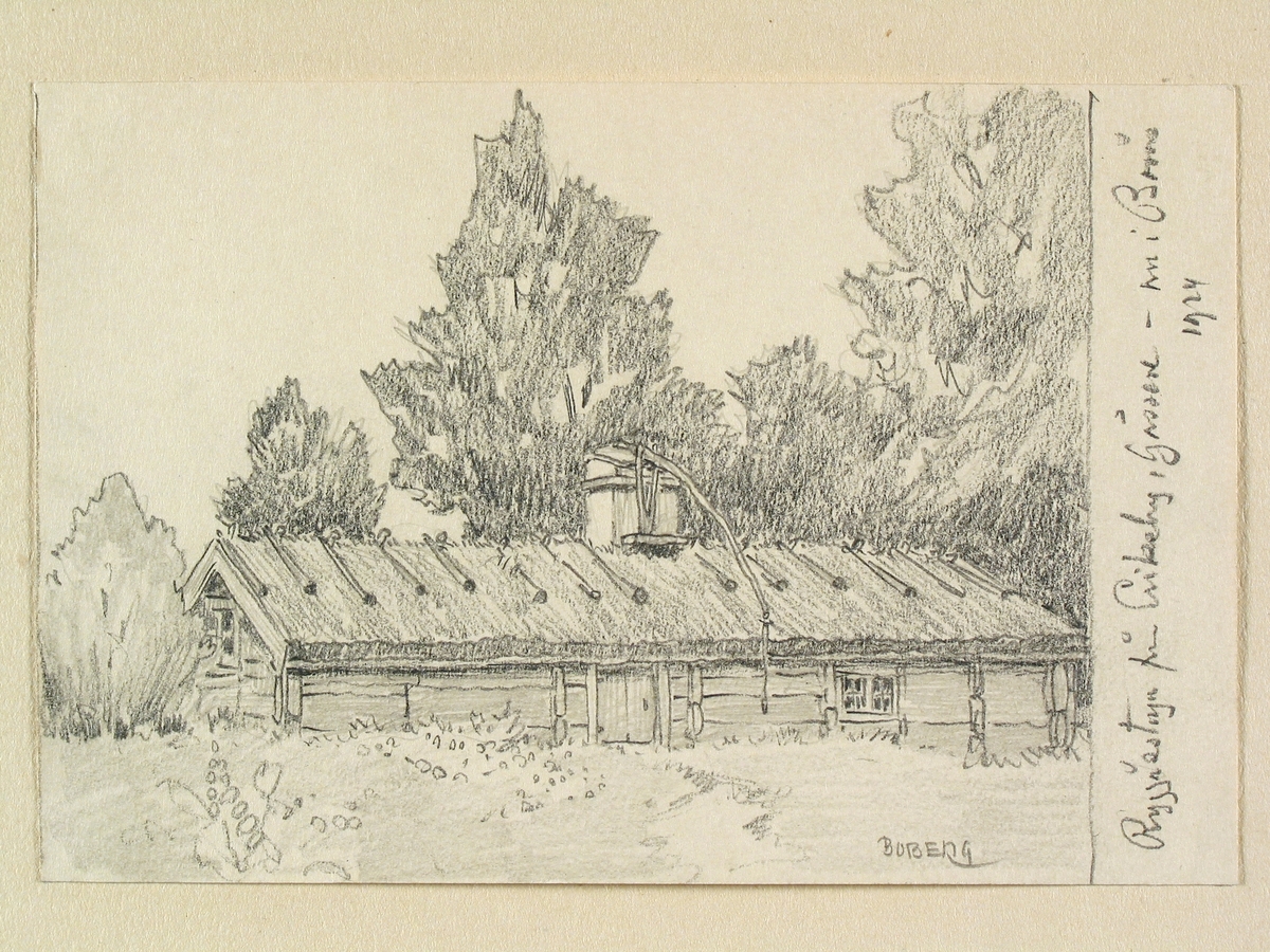 Teckning av Ferdinand Boberg. Västergötland, Gäsene hd., Eriksbergs sn., Borås friluftsmusem,