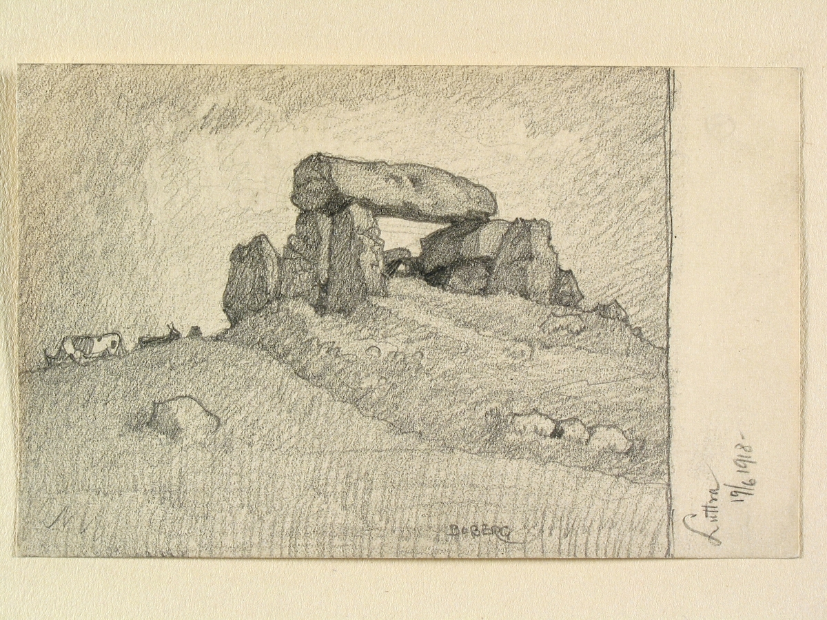 Teckning av Ferdinand Boberg. Västergötland, Vartofta hd., Luttra sn., Luttra, Gånggrift