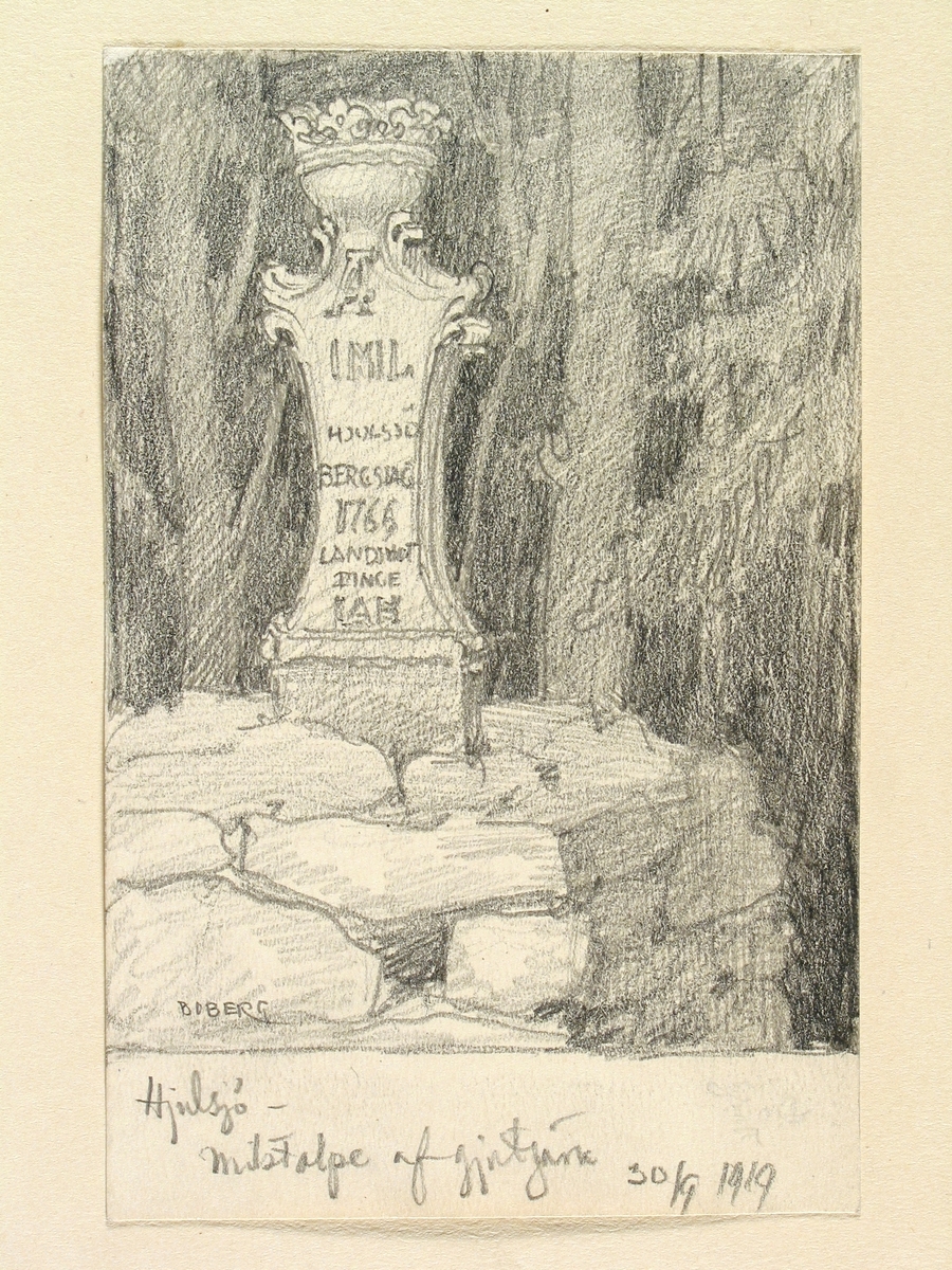 Teckning av Ferdinand Boberg. Västmanland, Nora å Hjulsjö blg., Hjulsjö sn.,