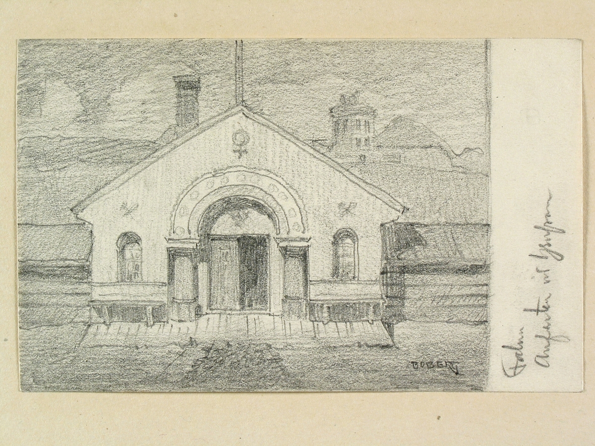 Teckning av Ferdinand Boberg. Falun, Falu gruva, Anfarten till gruvan