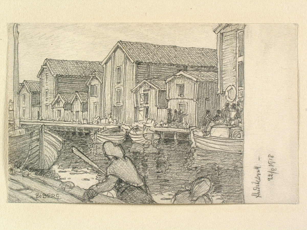Teckning av Ferdinand Boberg. Hudiksvall, Hamnen