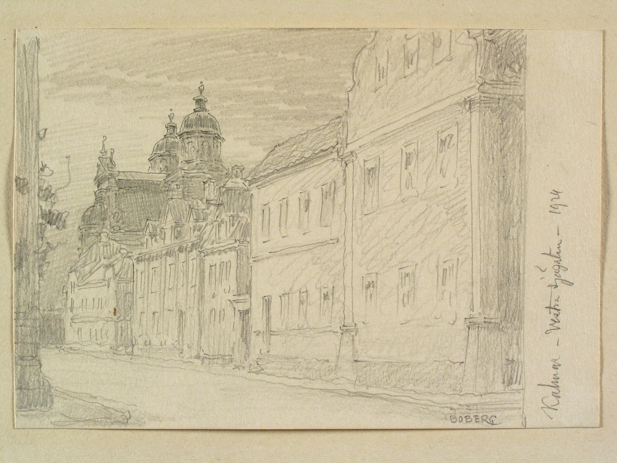 Teckning av Ferdinand Boberg. Kalmar, Vestra sjögatan