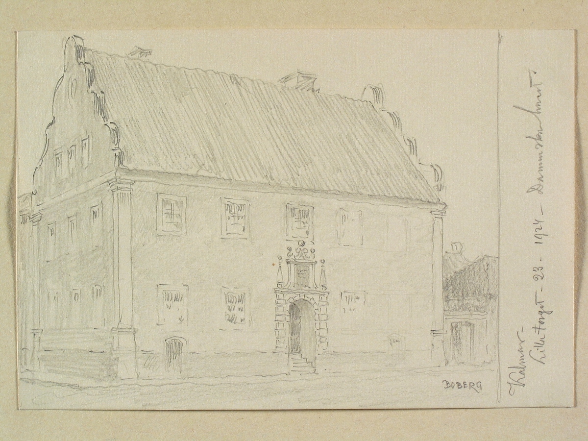 Teckning av Ferdinand Boberg. Kalmar, Lilla torget 23, Dammska huset