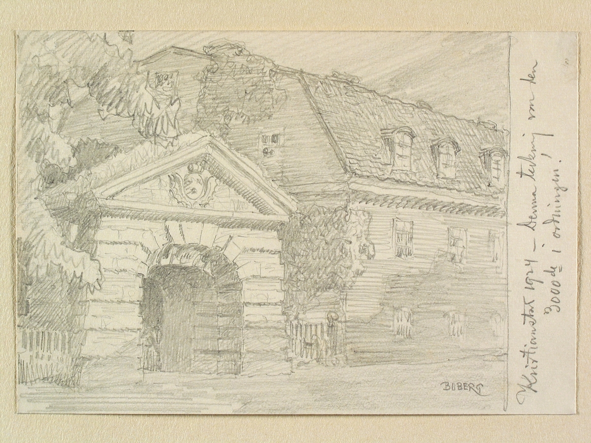Teckning av Ferdinand Boberg. Kristianstad, Husarkasernen, Portal till husarkasernen.