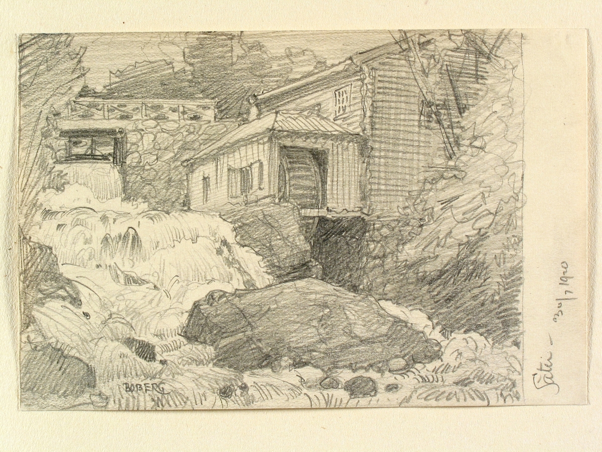 Kvarn i Säter, Dalarna. Teckning av Ferdinand Boberg.