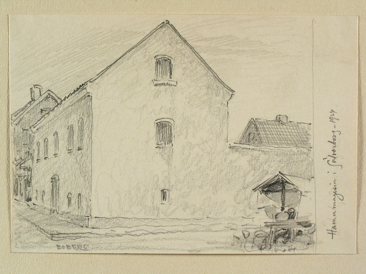 Teckning av Ferdinand Boberg. Sölvesborg, Kv. Järven 8, gamla nr. 47