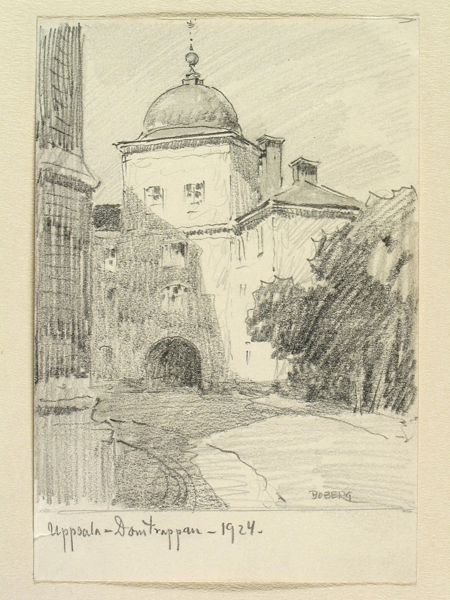 Teckning av Ferdinand Boberg. Uppsala, Domtrappan