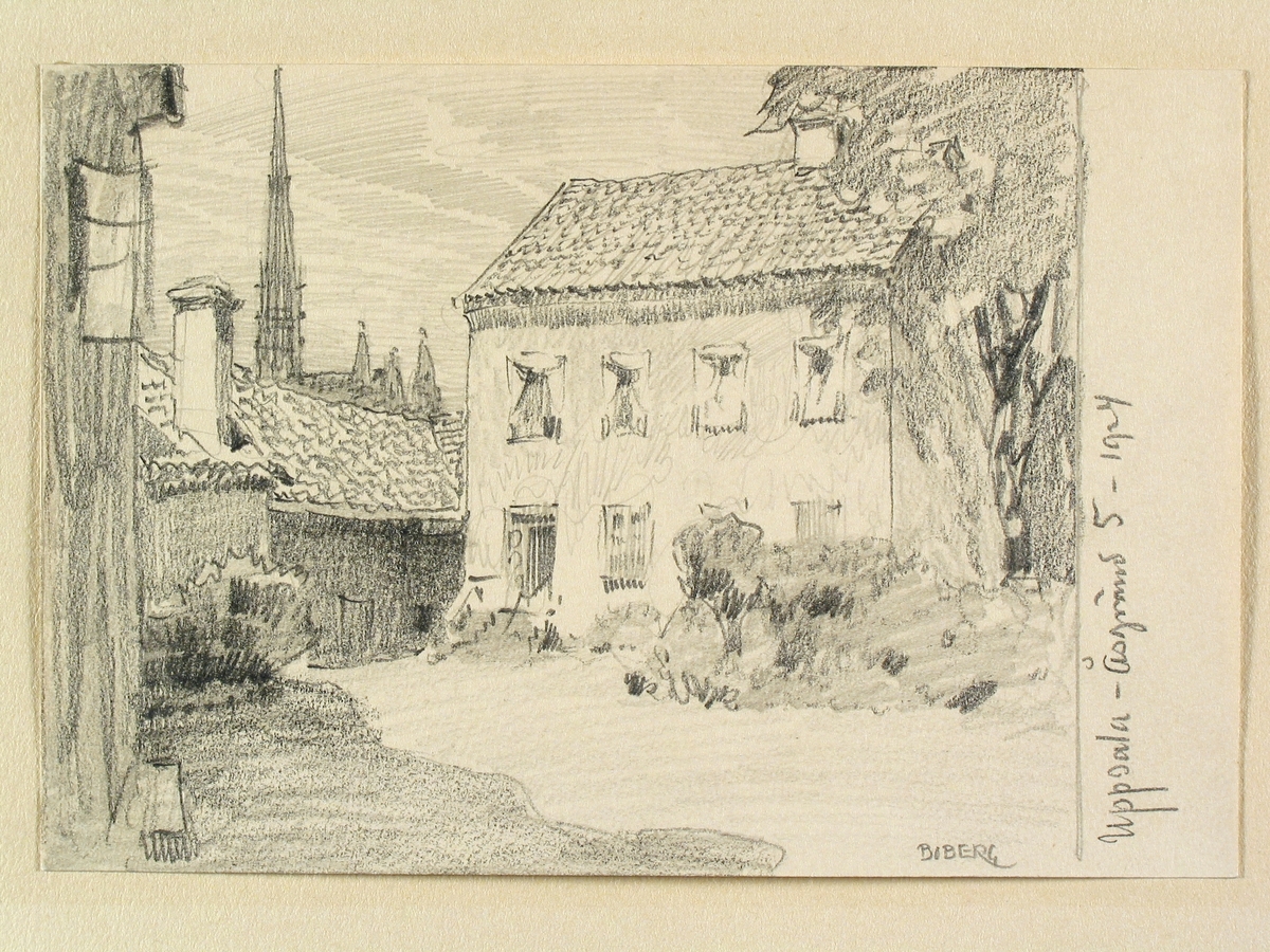 Teckning av Ferdinand Boberg. Uppsala, Åsgränd 5